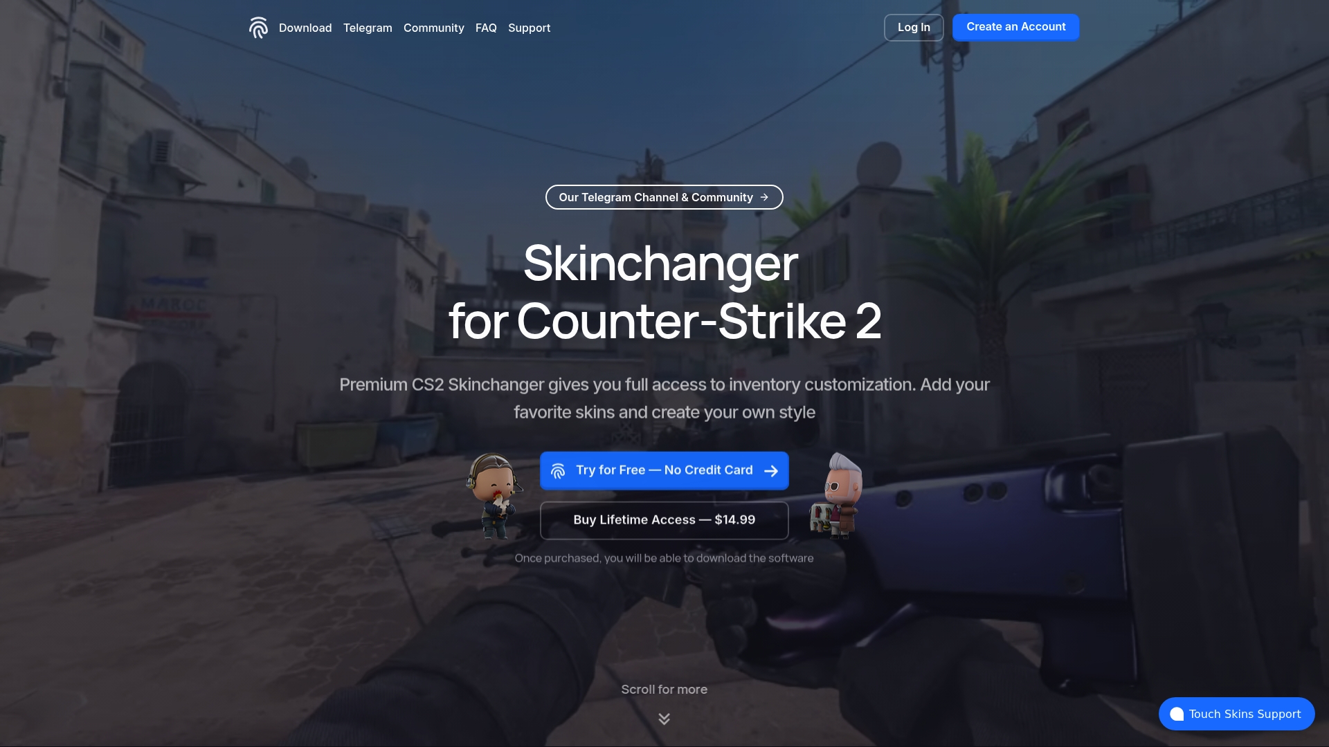 Touch Skins combines broad skin and model support with a mobile friendly web interface and a privacy first approach. The key selling points are wide compatibility with CS2 skins and a promise of no gameplay performance penalty, packaged for a single lifetime fee.